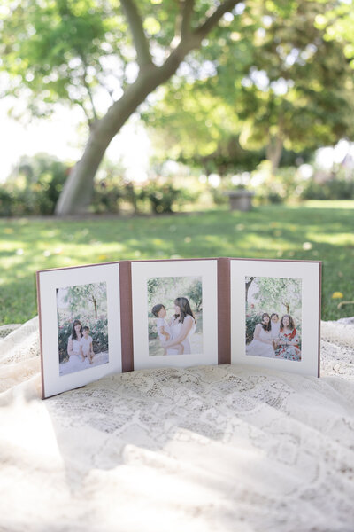 Your favorite 3 images in a matted folio with your choice of luxe linen fabric.